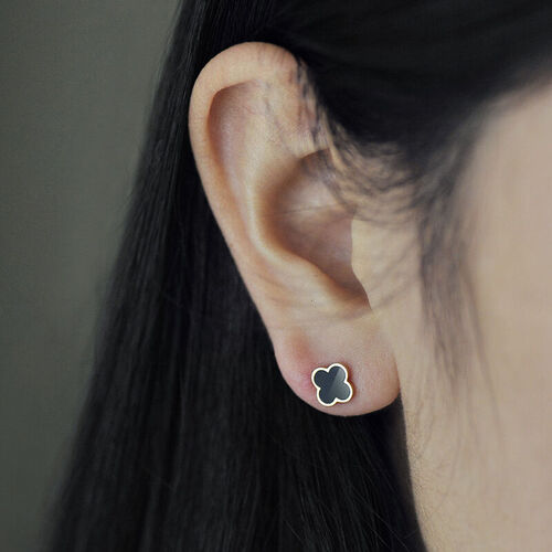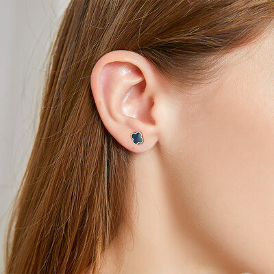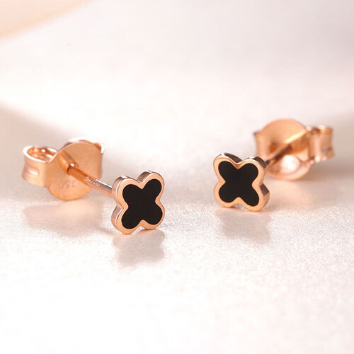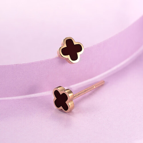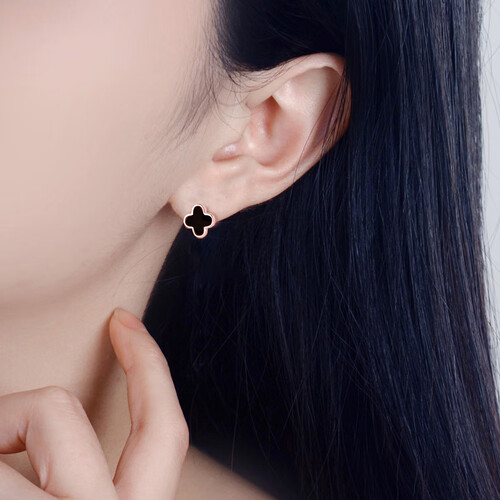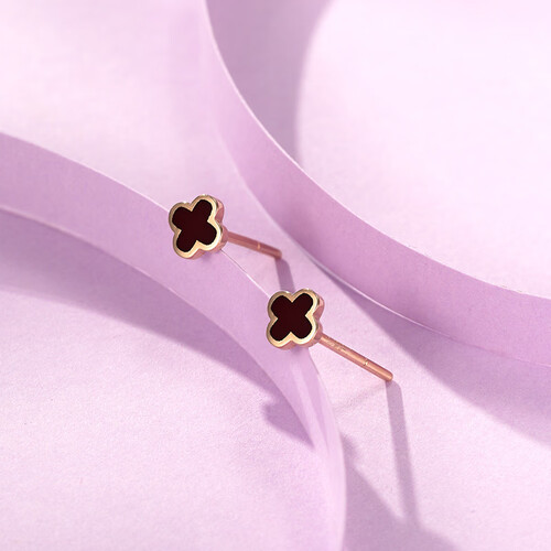 四叶草耳钉,寓意美好,希望佩戴后每天都有好心情。温柔的玫瑰金搭配绚丽珐琅,闪亮吸睛,点缀在耳畔增添时尚感。
