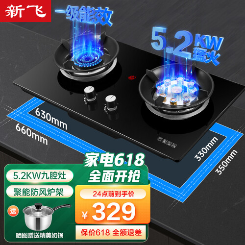 采用了鸳鸯锅灶的设计,双锅同时进行烹饪,煲汤炒菜互不影响。拥有环形防风炉架,让热量准确传入食物之中,避免热量四散。