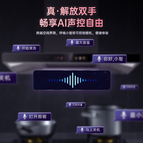 拥有智能语音功能,只需动嘴就能够完成各种操作,充分解放双手。拥有热清洗功能,不用亲自动手清洗,烟机更加洁净。