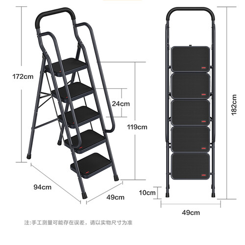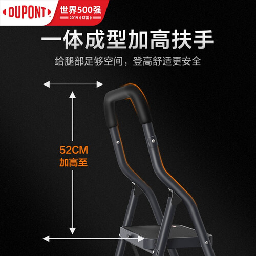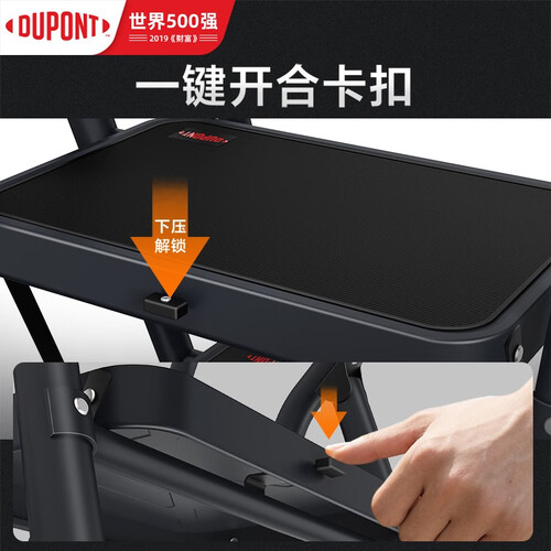 梯身整体加宽加大,承重力更强,不容易摇晃;卡扣一键开合,可加强梯子的稳定性;采用五层表面工艺,不容易生锈。