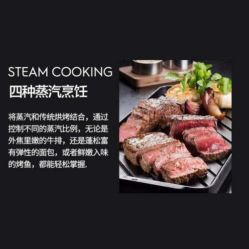 欧洲原装进口,拥有四大烹饪模式,帮助你轻松做出一桌可口菜肴。更有蒸汽清洁,轻松擦拭顽渍油渍。