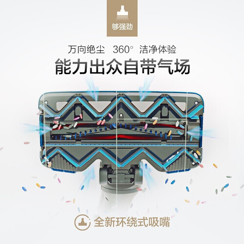 配备环绕式吸嘴设计,支持360°旋转,吸尘全面无残留。配备LED显示屏,剩余电量一目了然,掌控电量更直观,方便及时充电。