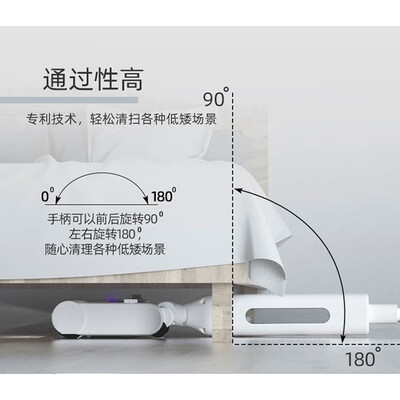 采用创新专利技术,手柄可以上下左右旋转,且躺平仅8CM,可轻松深入床底、沙发底清洁,解决卫生死角难清理难题。