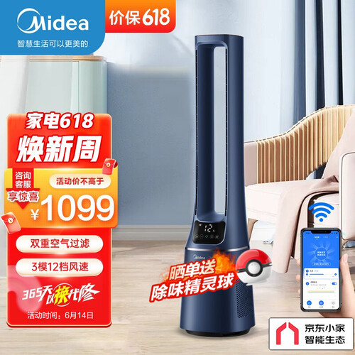 这款电风扇加入智能感温系统,可感知温度变化,并自动调节风速。采用优化风道设计,出风更细腻。
