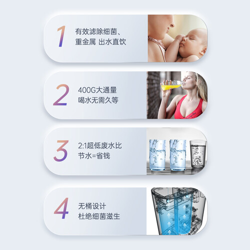 采用美国进口RO反渗透膜,能够有效的除去水中的有害物质。更有集成水路系统,能够有效的避免漏水问题,使用起来更加无忧。