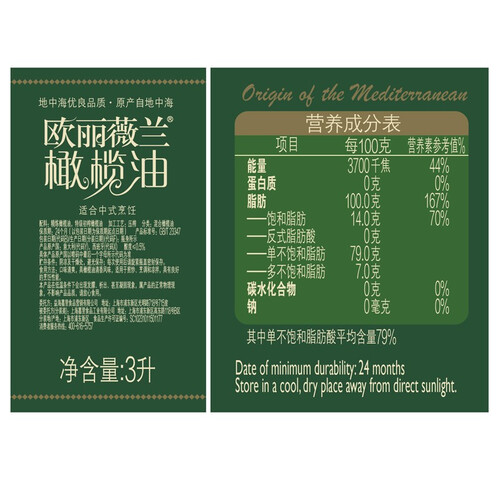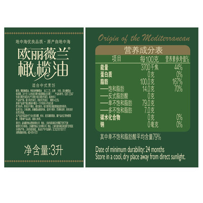 密封式瓶口封装,精致防漏油瓶口设计严丝合缝,使用更便捷容量。单不饱和脂肪酸平均含量高达79%,适合中式烹饪。
