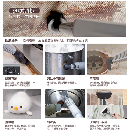 大容量的水箱设计,无需频繁注水,延长续航清洁。三挡蒸汽调节,满足不同洁净需要,选择不再单调。多功能刷头,满足全屋的打扫。