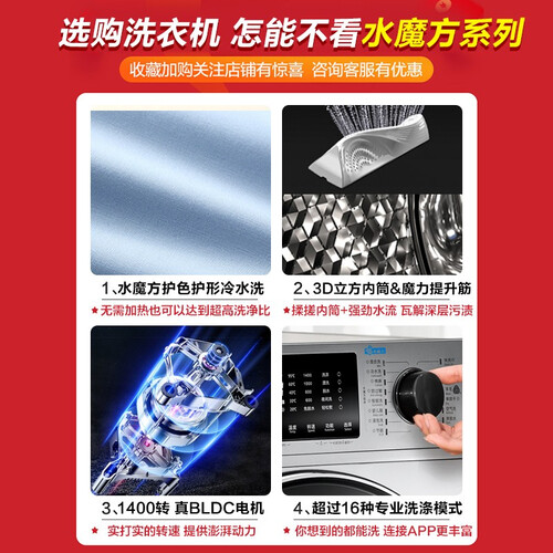 采用智能水魔方冷水洗涤方式,实现变速摔打,深层瓦解污渍。内筒独特立体凹凸造型,按摩力度恰到好处,保护衣物防磨损。