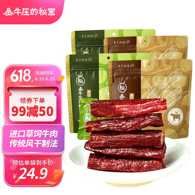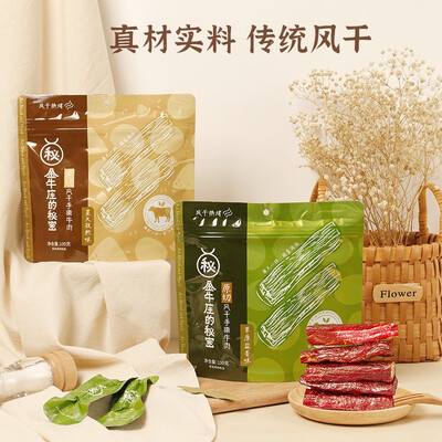 整块原切成段的牛肉,让品质可以看得见。再通过传统的风干工艺,更是确保了纹理非常清晰且入口筋道的品质。