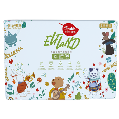柔弹的腰围设计,舒适贴身,能够很好的包裹腰部。复合吸收的芯体,不易反渗结团,让屁屁能够持久干爽。