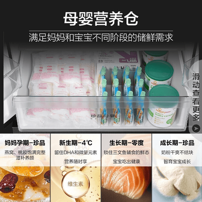 42L三挡变温区设计,可为多种食材保鲜,满足全家人多样饮食需求。搭载母婴模式,一键开启4℃冷藏,有效保障母乳稳定性。