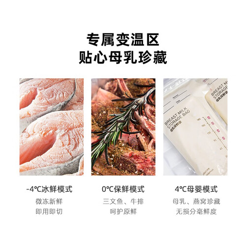 全新一体式高亮门框,一体成型工艺,外观更精致。干湿分储设计,食材独立存放,全空间抑菌技术加持,保证食品新鲜安全。