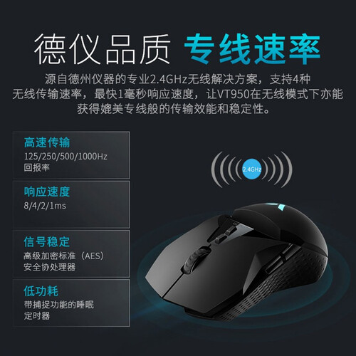 配备小型接收器,插入后提供10米左右范围内的无线传输性能,使用更随性。内置800毫安锂电池,续航更久。
