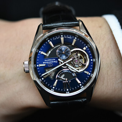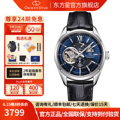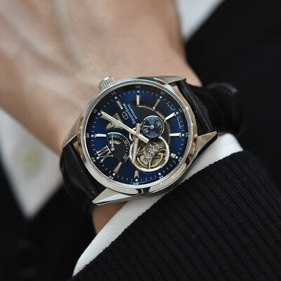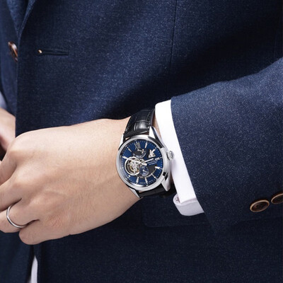 表盘部分选用镂空工艺处理,可以看到内里的机械构造,呈现出精湛的设计手法。搭载推拉式表冠设计,使用更便捷。