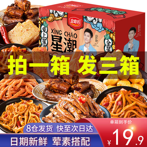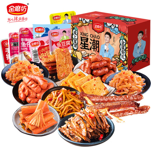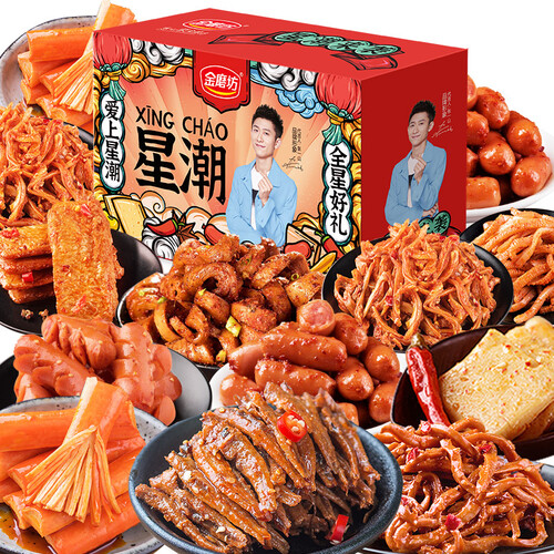 金磨坊这款休闲零食大礼包,有荤有素一起搭配,告别选择恐惧症。麻辣小零食好味齐聚,经过重重筛选,严格检测,一次吃个够。