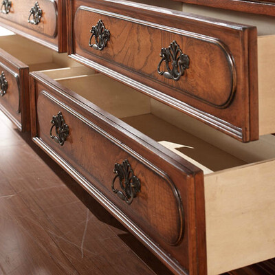 框架选用东南亚进口的优质橡胶木,纹理丰富清晰,强度高且抗腐蚀性强。结合金属拉手设计元素,显得十分的精致优雅。