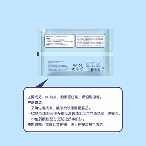 采用食品级配方,经过深度过滤的水质,肌肤娇嫩的宝宝使用更放心。内含10片,结合萌趣可爱的包装,放入包包,满足随时清洁。