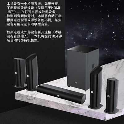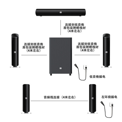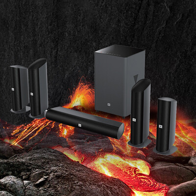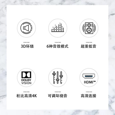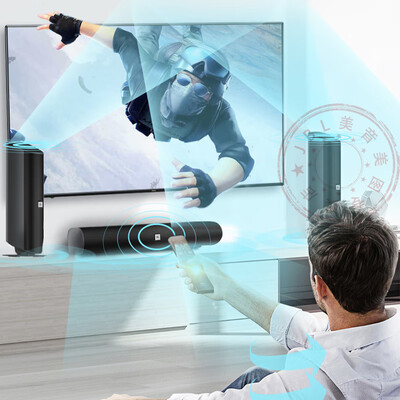 5.2声道系统由条形音箱,左右环绕音箱和低音炮组成,更好还原影院质感。配备的8英寸无线低音扬声器,低音更震撼。