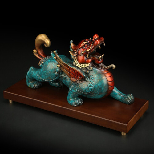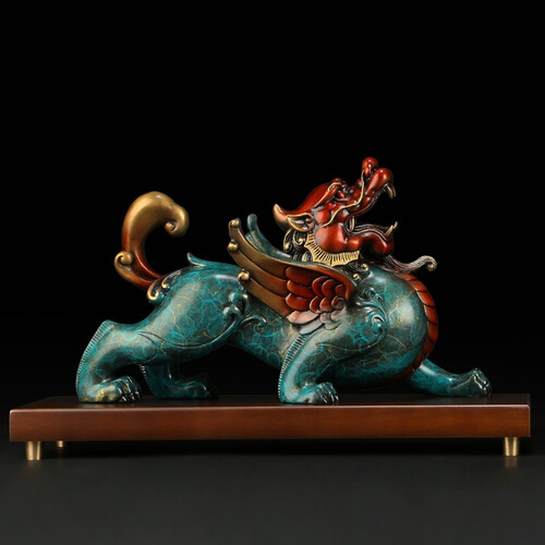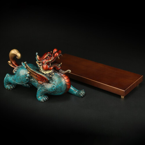 黄铜材质,使用传统的失蜡法精心铸造,使其色彩鲜明,仿佛如画中跑出的一般。实木底座可拆分设计,可以自由的拿放,非常的方便。