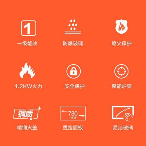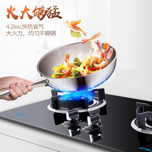 采用二重供氧和四维进风设计,让燃气与氧气充分融合,燃烧更充分,火力更加旺盛,同时减少一氧化碳排放。