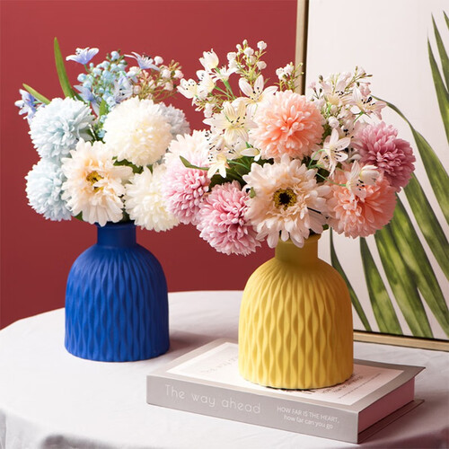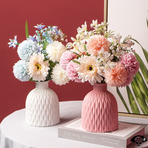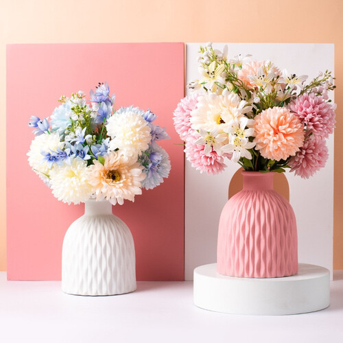 花瓶为陶瓷材质,瓶身添加特殊纹理,质感细腻新颖有个性。可插仿真花、鲜花,也可单瓶做装饰品,摆到哪里都好看。