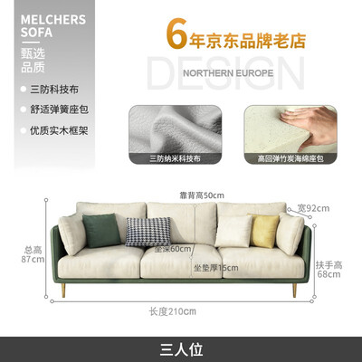 选用德国纳米科技布打造,防水抗污防尘,沙发清洁打理更方便。使用升级加厚实木框架,坚固耐用,防潮防霉,满足你长久使用需求。