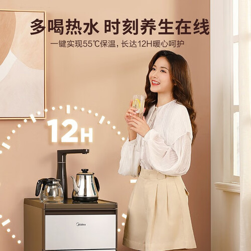 7.5升储物柜功能,可轻松存储一次性水杯,茶叶等用品,方便拿取。双击取水功能满后即停无需看管,省时省力。