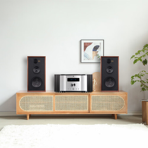 手工木皮搭配嵌入式前面板与传统吸音网罩,造型经典复古。传统的三音路设计,使声音更加细腻柔滑,音域更宽广。