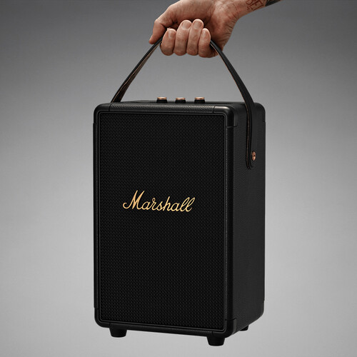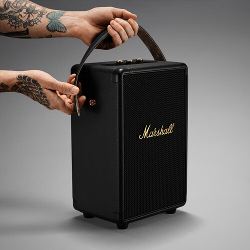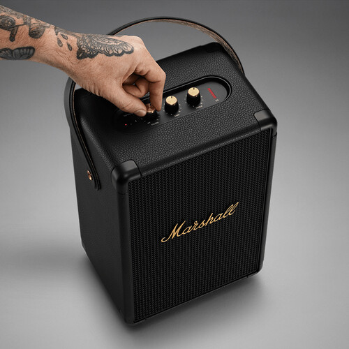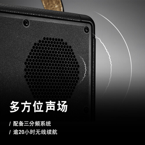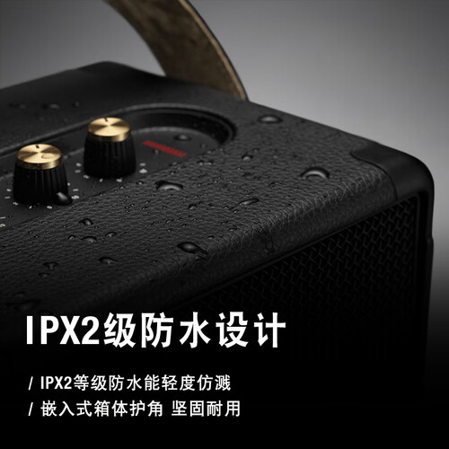 马歇尔这款音箱在顶部面板配备了低音和高音旋钮,方便用户调节出自己喜欢的声音,满足不同喜好。