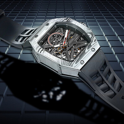 经典酒桶型的时尚外观,贴合手腕,尽显气质。配以镂空交错设计结构表盘,让男士佩戴充满刚毅之气。