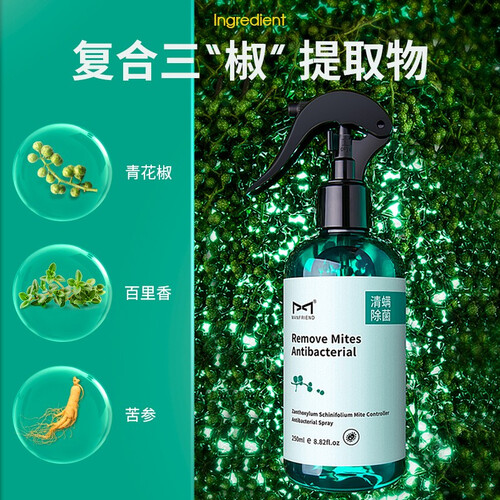 应用植物配方,含青花椒、百里香及苦参提取成分,对肌肤无刺激,可深度清除细菌与螨虫。并采用锁扣式喷头,不易漏出防误开。