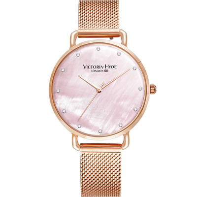 很衬肤色的金色腕表,编织感的精钢表带加持,腕表佩戴舒适,轻松就能凸显出复古摩登范儿。