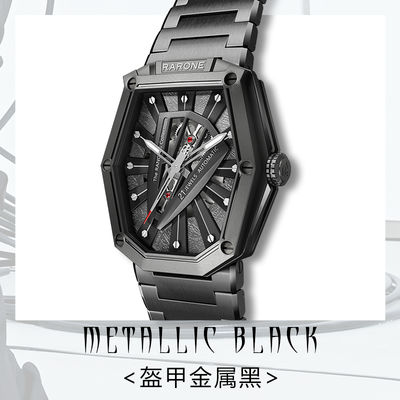 原创八边形自然金属切割,挣脱传统非方即圆界限,举手投足尽显凌厉气场。高温化学油压锻造陨面纹理,彰显不俗气质。