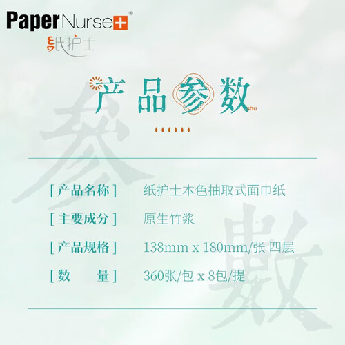 甄选慈竹竹浆造成,不进行漂白处理,色泽自然微黄。纸张四层厚实,触感柔软丝滑,擦拭肌肤不会有粗糙感。