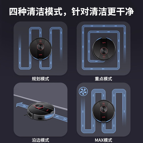 配有四种不同的清洁模式,切换方便,能够满足您不同的使用需求。搭载360度激光扫描技术,定位准确性高,轻松避障。