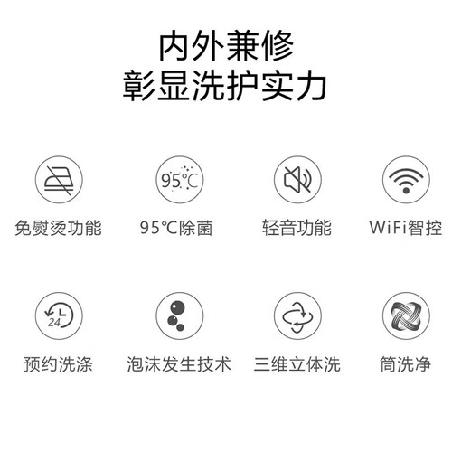 低速运转模式下,能减少衣物缠绕,衬衫顺滑平整,无需熨烫。后台智能预约控制程序,随时调节,监控洗涤运行状态。