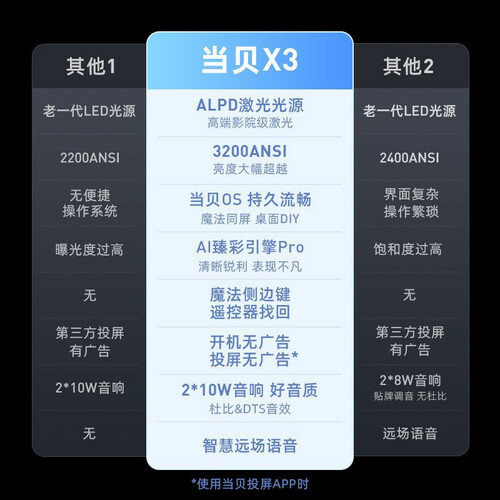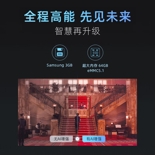 采用影院级激光巨幕技术,亮度更高,饱和度更鲜艳,画面更纯净。使用大师级芯片,可自动优化画面并进行动态运动补偿。