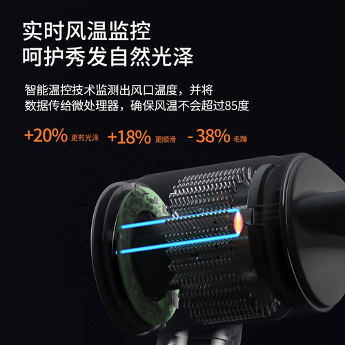 采用千万级蓝光负离子,抚平毛躁,保持秀发水润光泽。高速马达风量大,可以快速吹干秀发,唤醒秀发自愈能力。