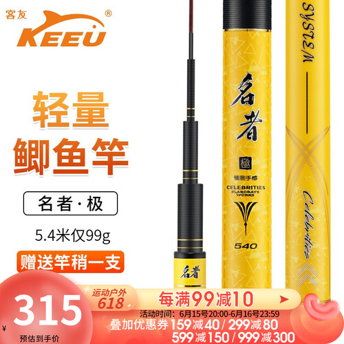 轻量设计的鲫鱼竿,选用高碳材质打造,轻盈易握,韧性更强。配合高温高卷合工艺处理,大幅度提升竿体稳定性,持久强韧,不易断竿。