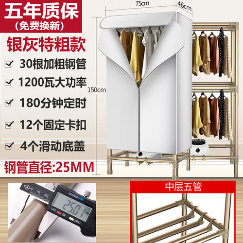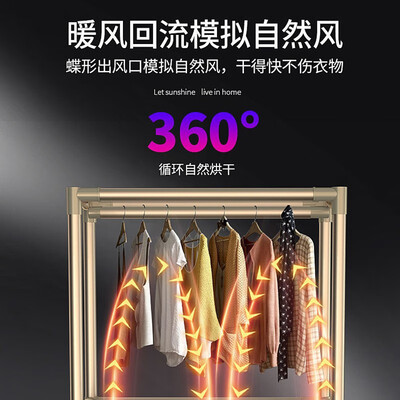 加粗加厚支架,提升承重能力,轻松挂置更多衣物。360°循环智能系统,搭配较大功率,减少烘干所需时间。