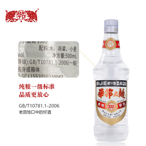 酒体呈现无色或微黄透明状,具有复合型香气,陈香显著;入口后,味道醇和甘润,经过纯粮固态发酵,不容易上头。