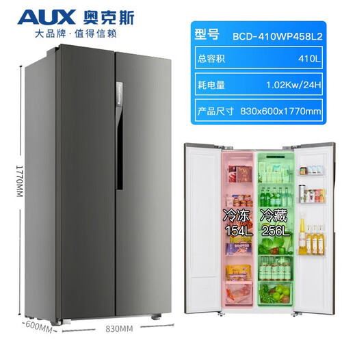 600mm纤薄机身,摆放灵活不占地,不浪费多余空间,外观简约百搭。大空间层架,储物空间合理分隔,大件食材也能放下。