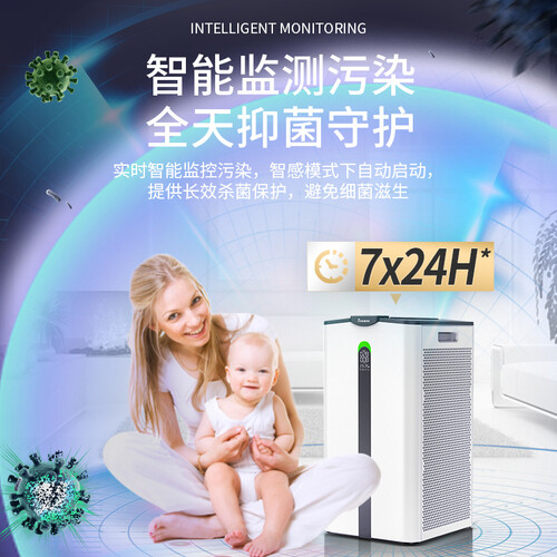 丰富的功能,不仅可以过滤空气当中的灰尘花,同时也可以主动捕捉有害微生物。四大数值实时显示,空气质量一目了然。
