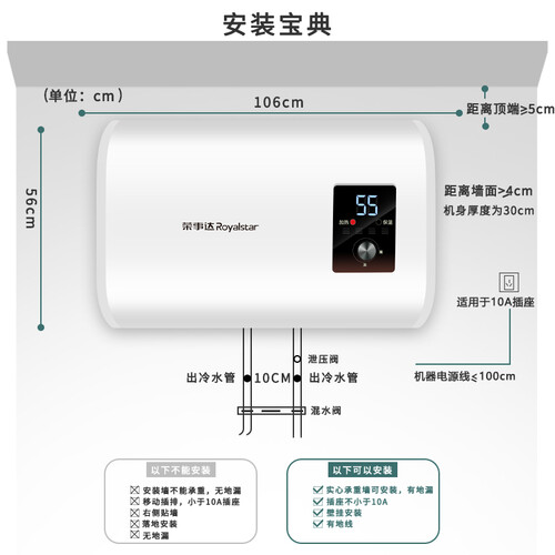 荣事达 蓝瓷双内胆电热水器