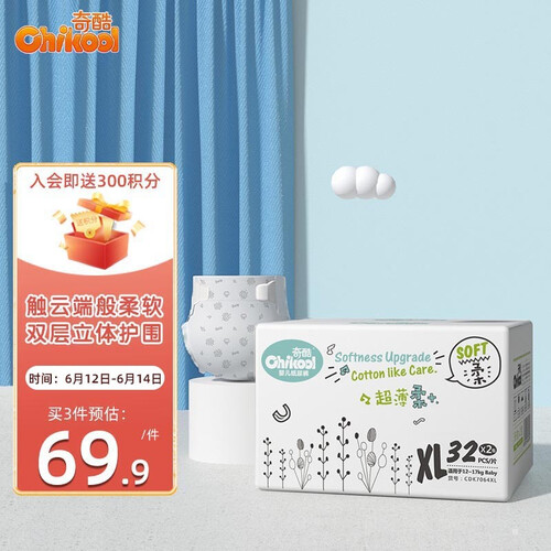 棉柔表层,触感柔软细腻,更好呵护宝宝娇嫩屁屁。双重护围设计,强效瞬吸安全防漏,宝宝自在玩耍。