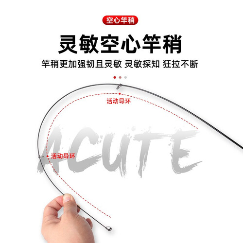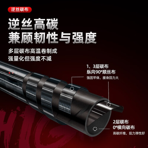 采用多层碳布高温卷制而成,质感轻盈且富有韧性,耐用不易断竿。倾斜导环设计,减少出线对导线环的摩擦,出线顺畅丝滑。
