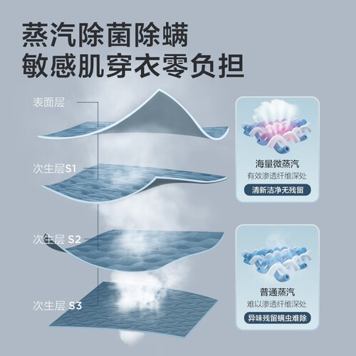 88度真丝柔洗技术,小幅摆动轻柔细搓,洗涤不变形不勾丝。微蒸空气洗涤,有效去菌祛味,还原衣物清新亮丽。