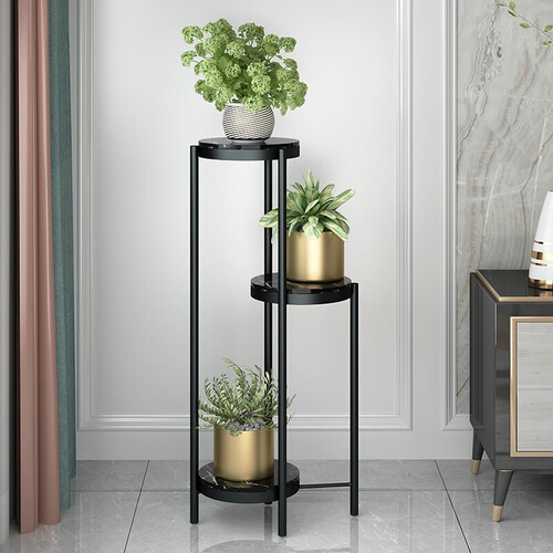 质感出众的黑色花架,搭配大理石的台面,更显奢雅的品位。精密的制作工艺,架体的表面光滑细腻,触感舒适不伤双手。