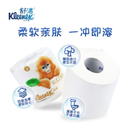 纸张质地绵柔,采用四层加厚设计,触感更加柔滑,不损伤肌肤表层。具有速溶于水的特性,不会造成马桶堵塞。