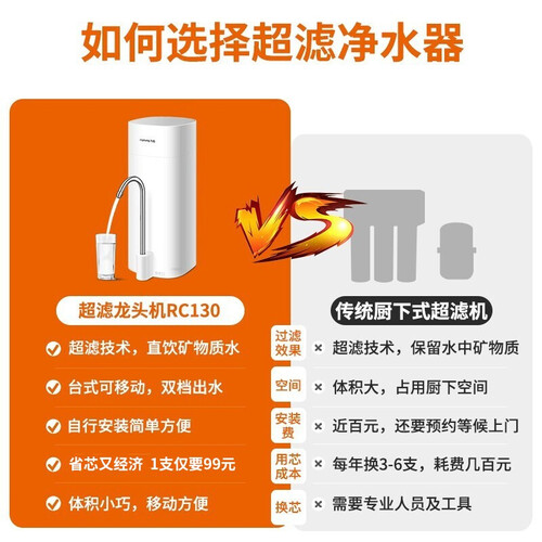 净化龙头一体设计,厨房水台上能够放置,使用起来很舒心。双挡出水,用什么样的水可以自己选择,使用很便捷。